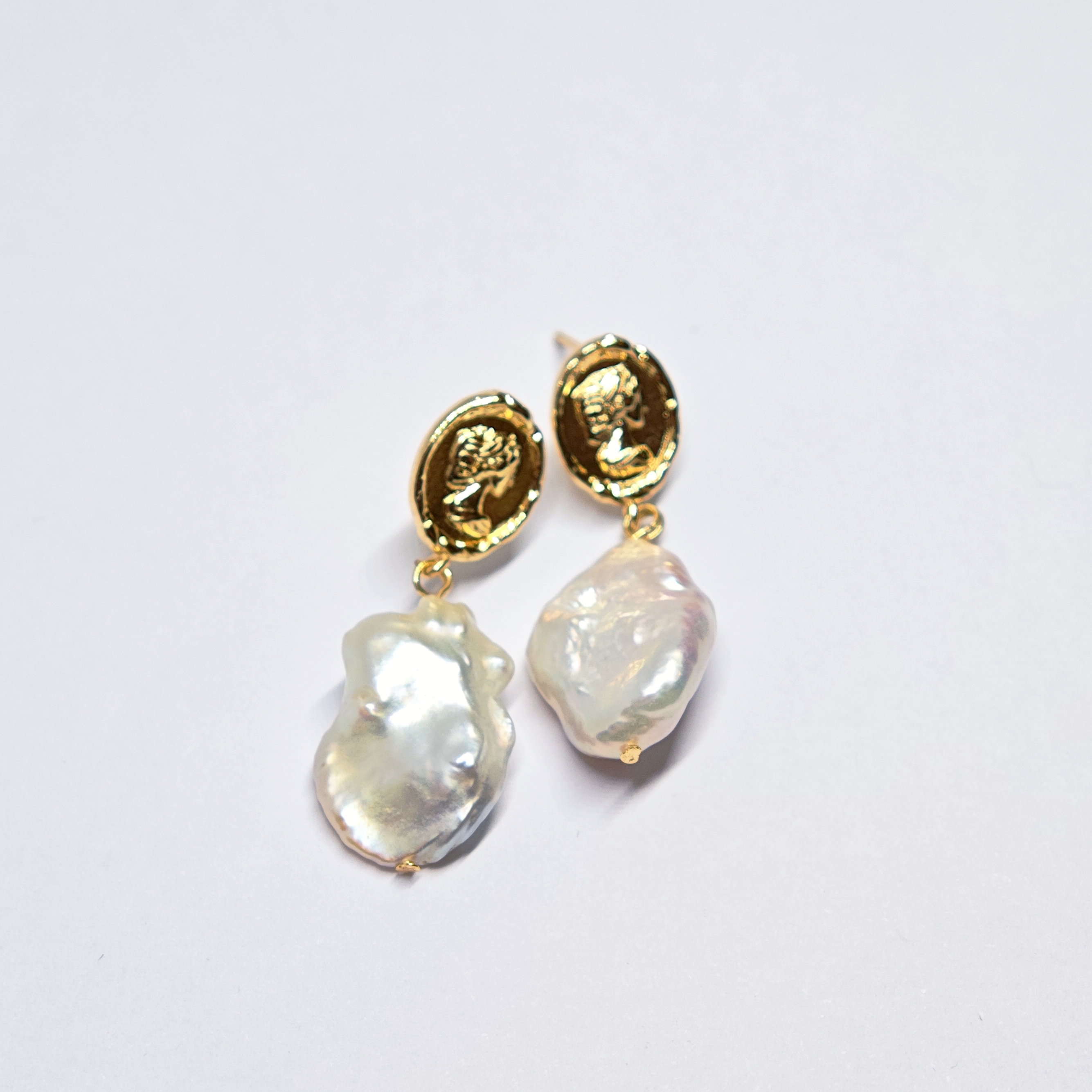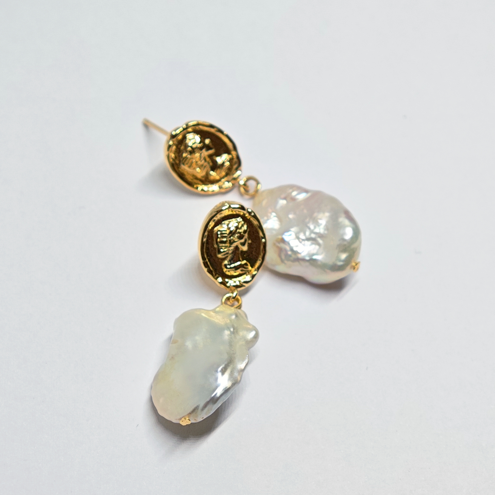 Each baroque irregularity and the nobility of the coin merge into a piece that radiates regal elegance.