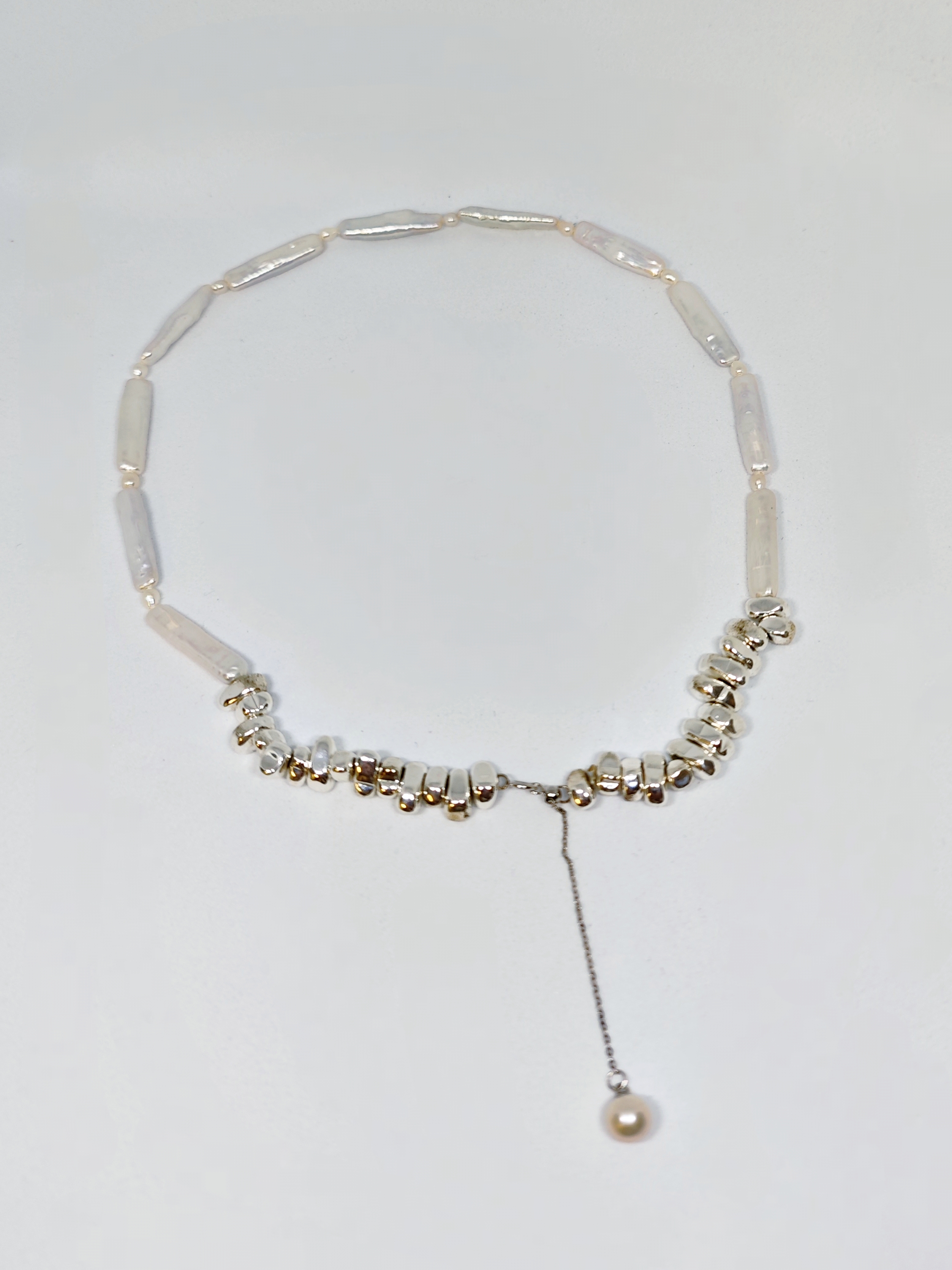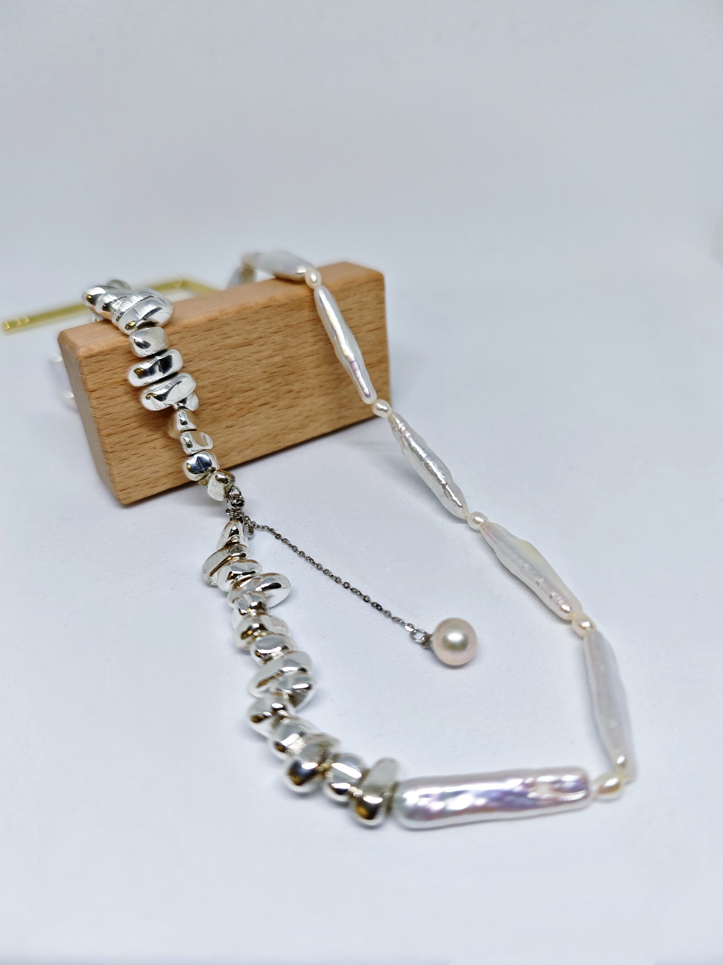 A delicate composition of elongated baroque pearls and soft freshwater beads, this piece is inspired by the gentle tides along the coast of Cadaqués—a seaside town bathed in light, silence, and surreal charm.
