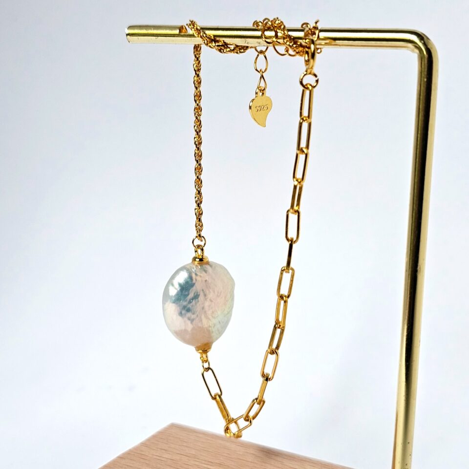 Baroque Pearl & Gold Chain Bracelet